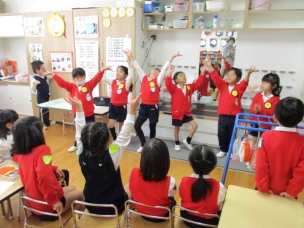 年長組の中でSnowMan「カリスマックス」の曲が好きな子が集まり、他のクラスに踊りを披露しに行っています。本家の振付を動画を見て覚えてくる子いて、段々と踊りのクオリティが上がってきています!決めポーズをするときは顔もバッチリ決めてくるカッコイイダンサーズたちに見ているお客さんからたくさんの拍手が沸き起こっています。