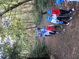 操山に山登りに行きました。バスで山に近づくと「赤色!黄色になっているところもある!」と紅葉している山を見て秋を感じていました。登山口に着くとみんなで最後まで登れるように気合を入れてスタート!たくさんの落ち葉や木の実を拾いながら山頂を目指しました。急な坂道も乗り越え、みんなで元気にゴールできました。