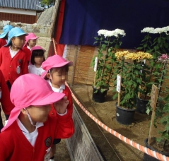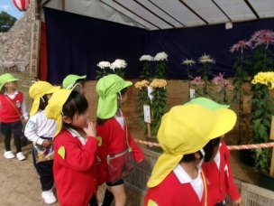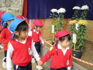 11月4日、烏城公園の下の段で開催された菊花大会に年少・年中・年長組で行きました。