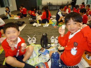 体験が終わった後は、お楽しみのお弁当時間!友達とシートをくっつけてお弁当を見せ合いながら美味しそうに食べました。