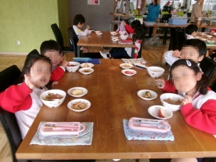 調理員さんが一生懸命作ってくださった出来立ての給食は、いつもよりたくさん食べていました。帰りには調理員さんに感謝の言葉と手紙をプレゼントしました。