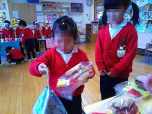 年中組はお部屋で自分が買いたいもの、お店の場所も確認していたので、お目当て目がけて一目散。店員さんとお金や言葉のやりとりを楽しみながら買えました。